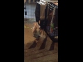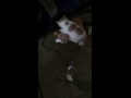 Cliff does well with dogs and cats. He is super playful!!... plays alone ... as long as he has energy! He enjoys little animal toys and loves his A-frame cat house.