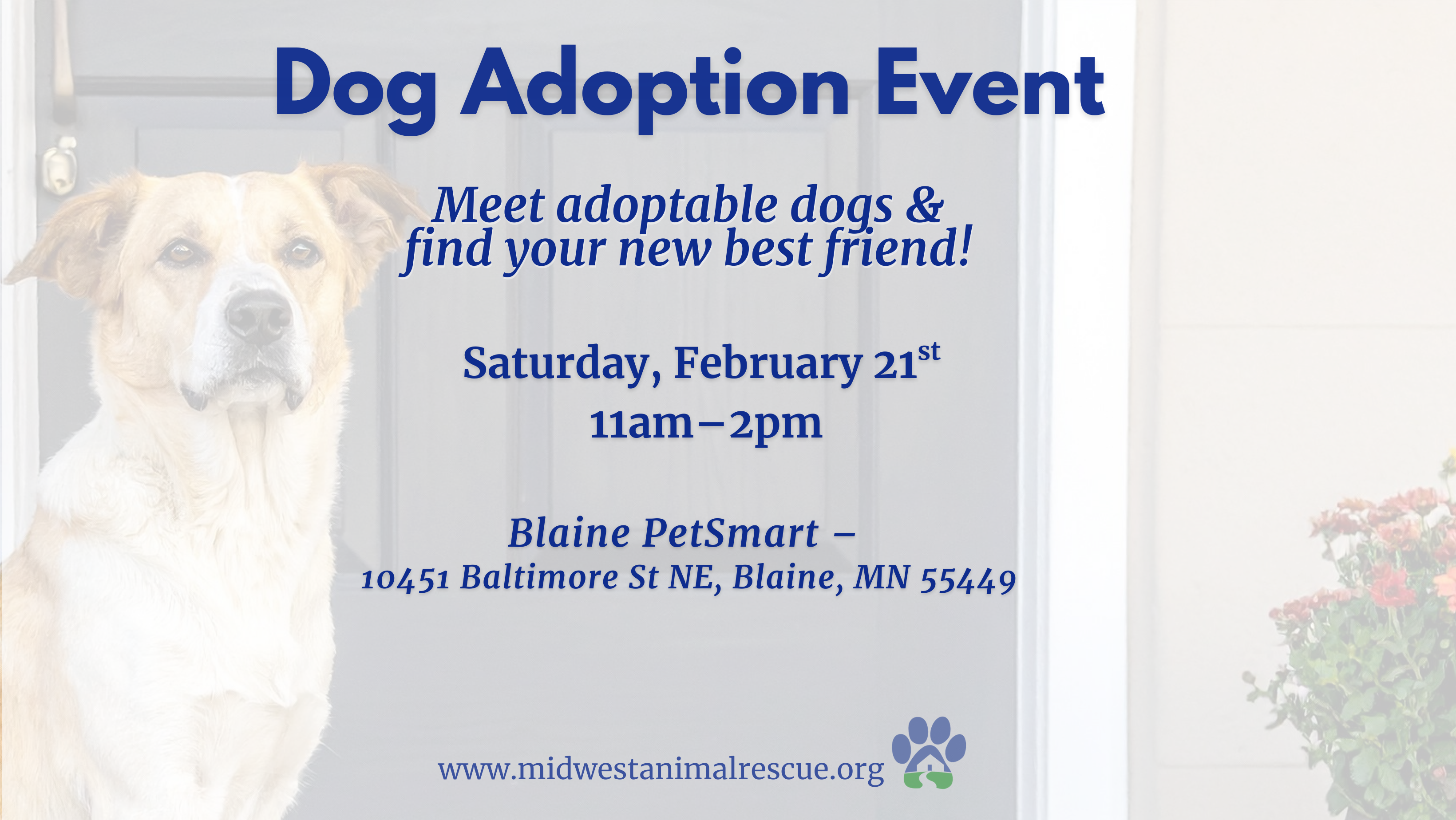 Looking to add a new canine companion to your home? Join us at Blaine PetSmart for a MARS adoption event featuring adoptable dogs ready to find their Road Home!